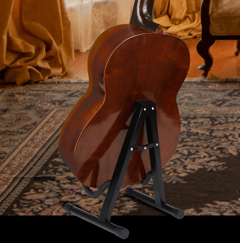 O suporte compacto e portátil para violão, guitarra e baixo da "Tonante" é ideal para músicos em movimento.