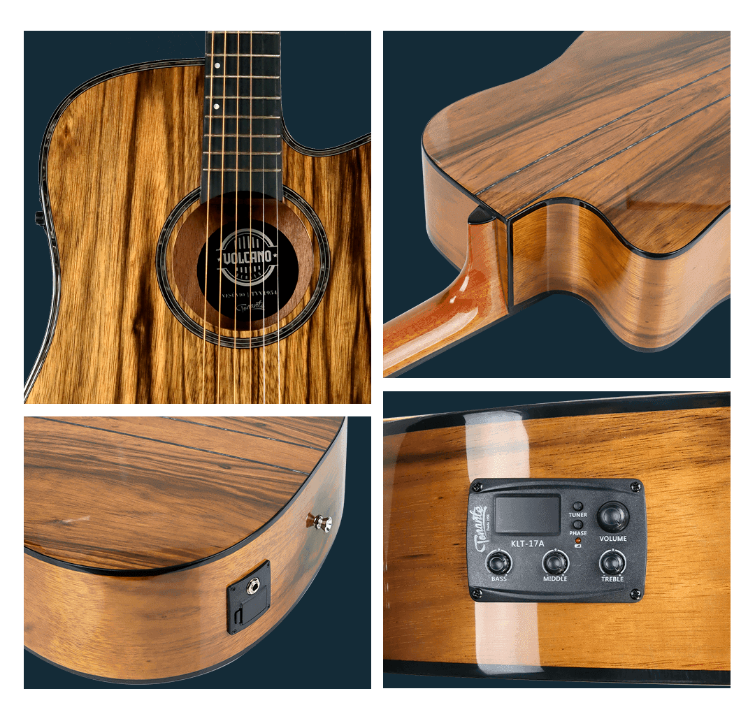 O violão Vesúvio, combina a textura do Mahogany e as ricas profundezas do Dao. Tudo isto proporciona um calor e uma profundidade tonal que representam o grande diferencial do instrumento.